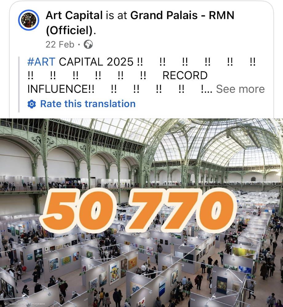 Art Capital 2025: The major artistic event at the Grand Palais, Paris. Art Capital is an exhibition that brings together four other emblematic exhibitions in the art world. Its aim is to put emerging and established artists at the center of attention and to bring these contemporary creators to the attention of the public.