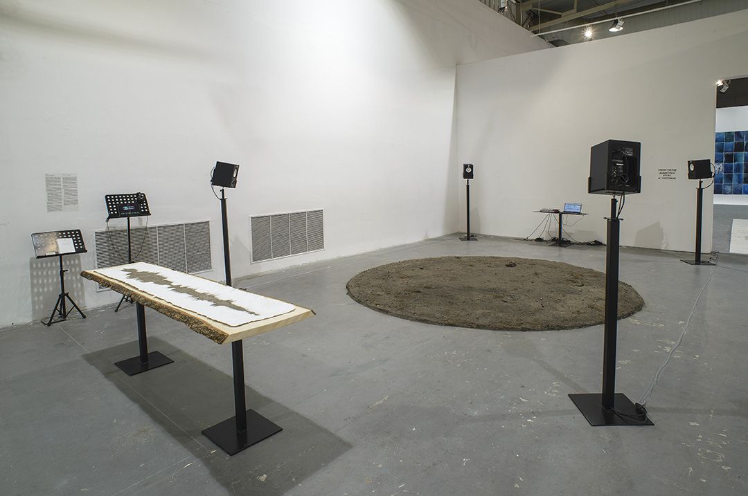 Therefore, being fully aware of the way in which the human presence on the planet affects the sense of time and the viability of our place and that even the most solid construction is subject to destruction, we must fatally respect and submit to the judgment of nature. The installation is based on elements of experienced personal experience and combines raw materials with visualized narration, sound and conceptual reflection. It is made of material, which cooperate with the specific sound composition, forming a peculiar audiovisual imprint.