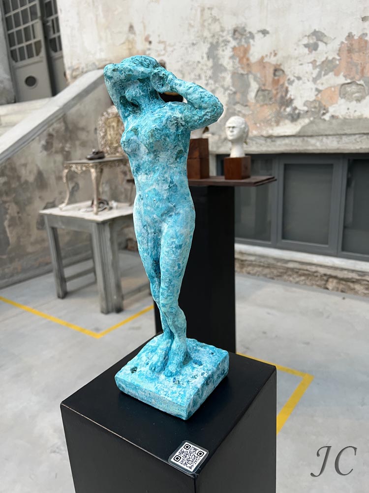 The artwork “Woman” with dimensions 39x11x11 cm, was created in 2019 and casted in bronze using the lost wax technique (cire perdue). The reason for its creation was what is being spread almost daily on social media regarding violence against women around the world. The idea and inspiration were based on the study of historical works of art and especially period paintings by the French artist Jean-Léon Gérôme.